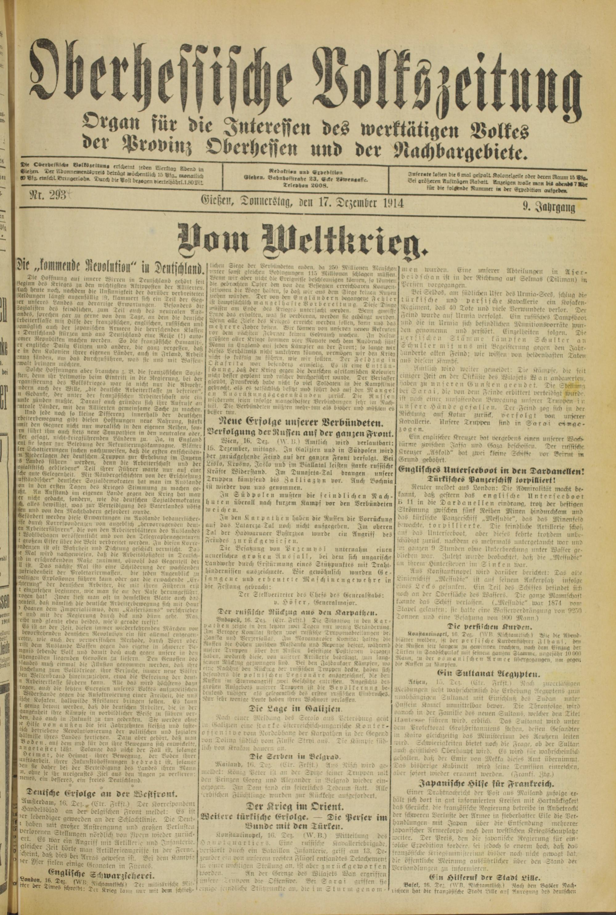 Oberhessische Volkszeitung. 1914-1923