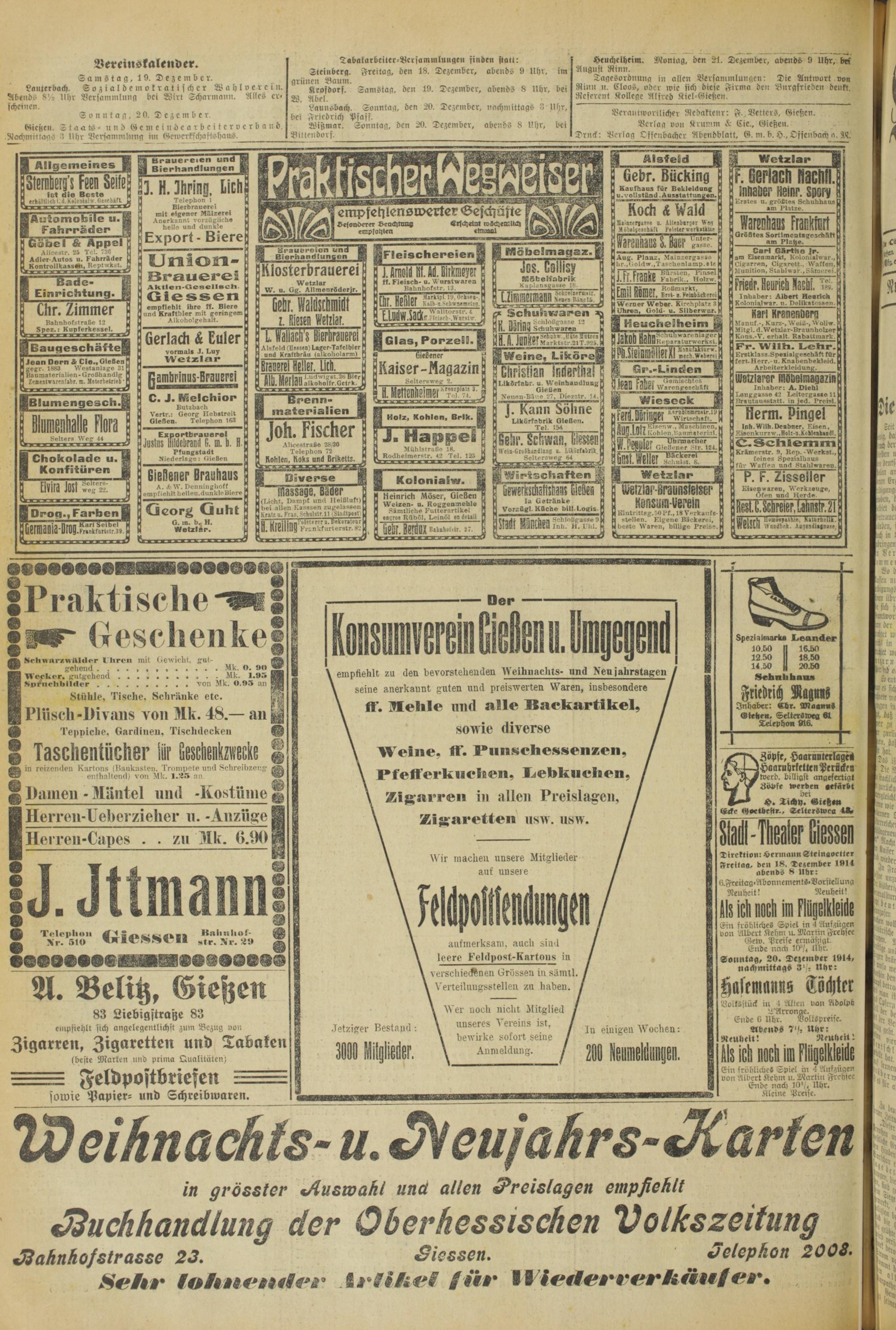 Oberhessische Volkszeitung. 1914-1923