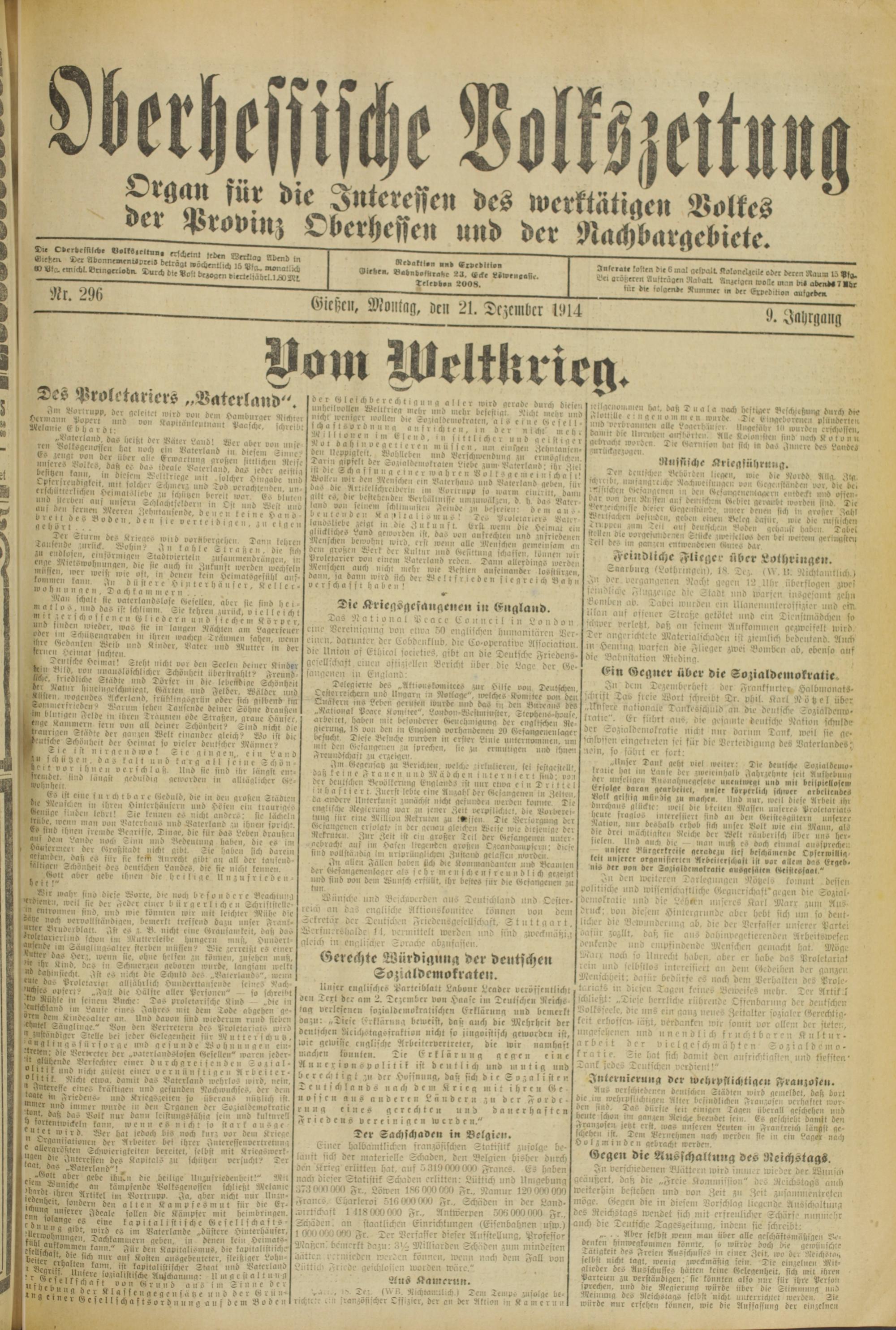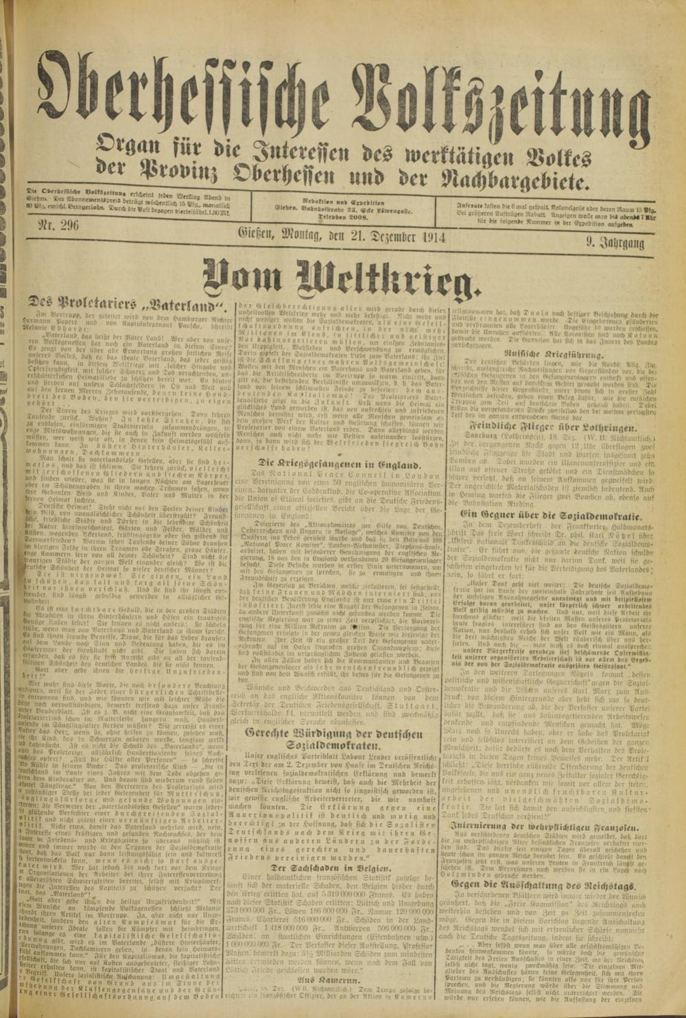 Oberhessische Volkszeitung. 1914-1923