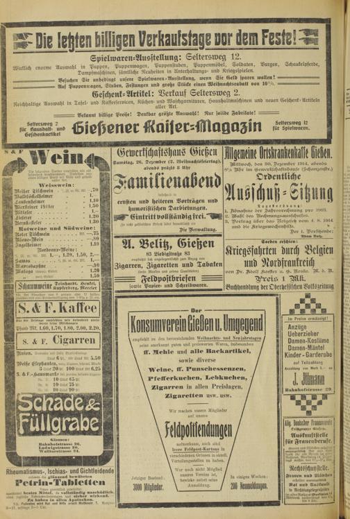 Oberhessische Volkszeitung. 1914-1923