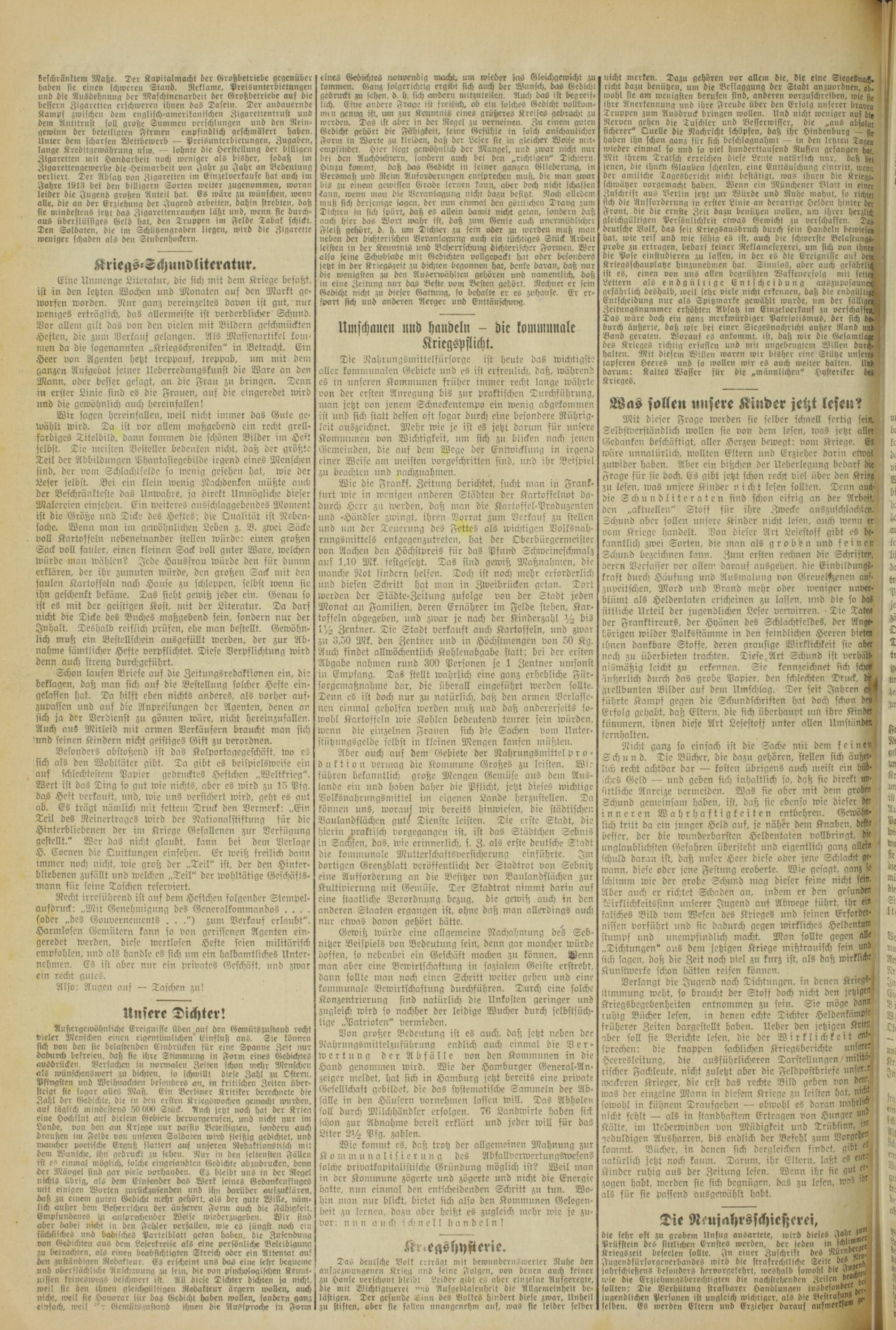 Regionale Zeitungen aus der Zeit des Ersten Weltkrieges