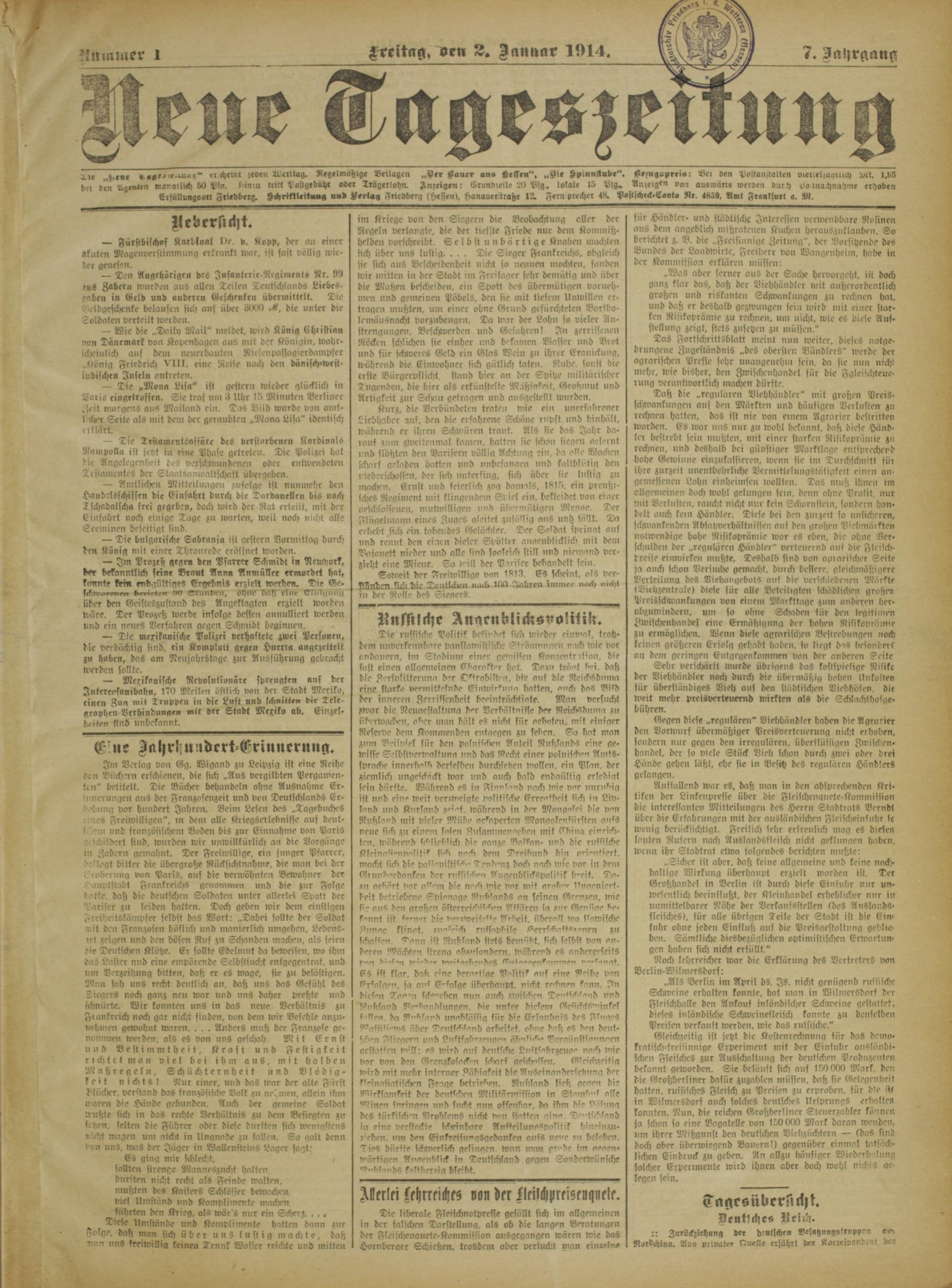 Neue Tageszeitung. 1914-1914