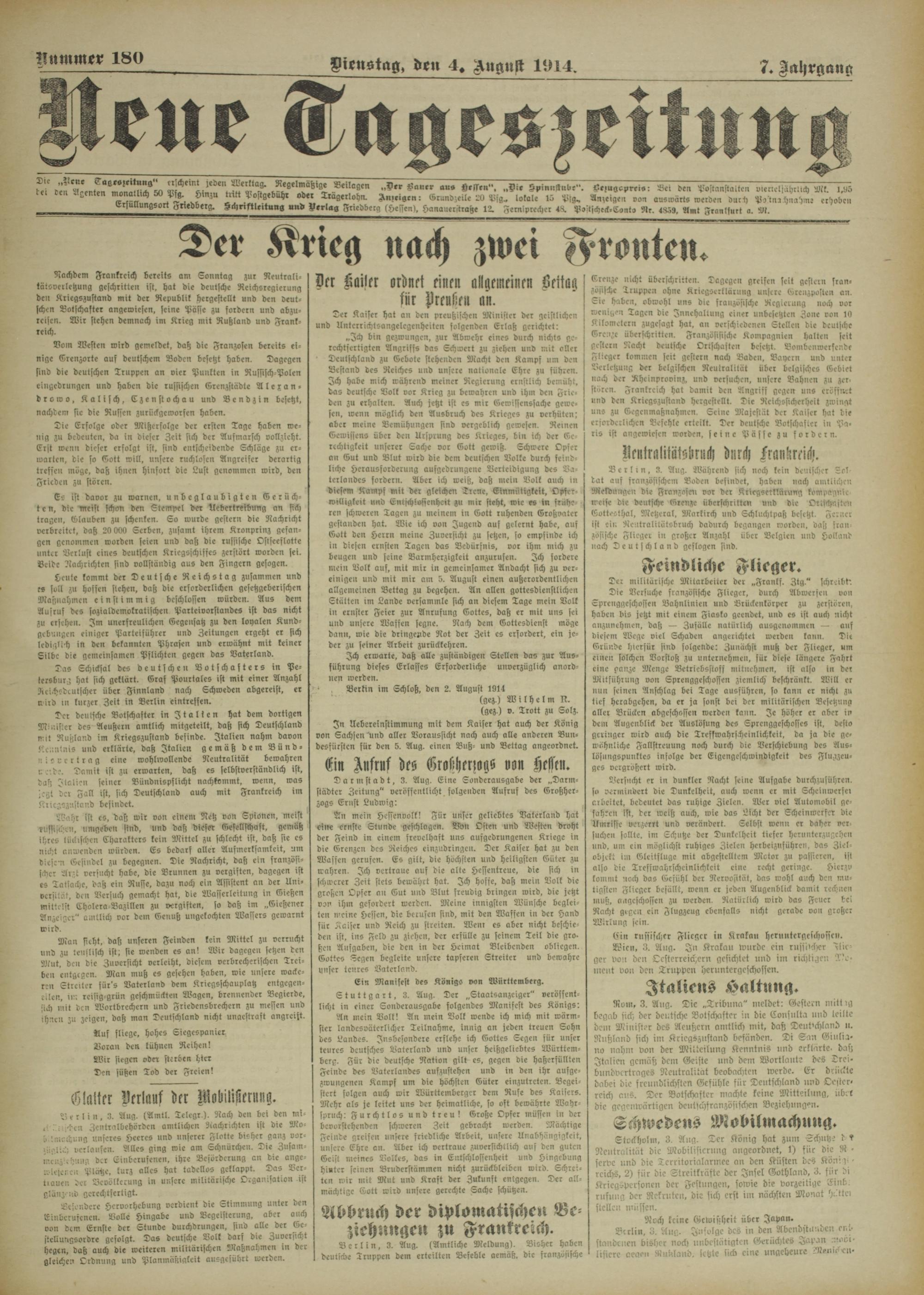 Neue Tageszeitung. 1914-1914