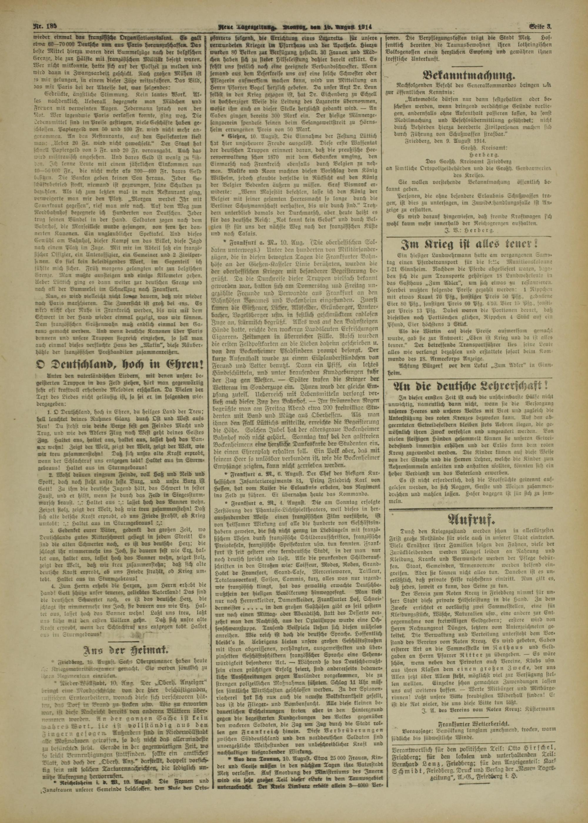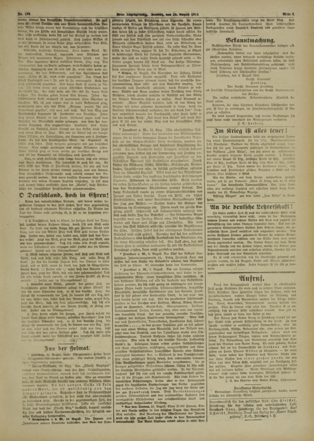 Regionale Zeitungen aus der Zeit des Ersten Weltkrieges