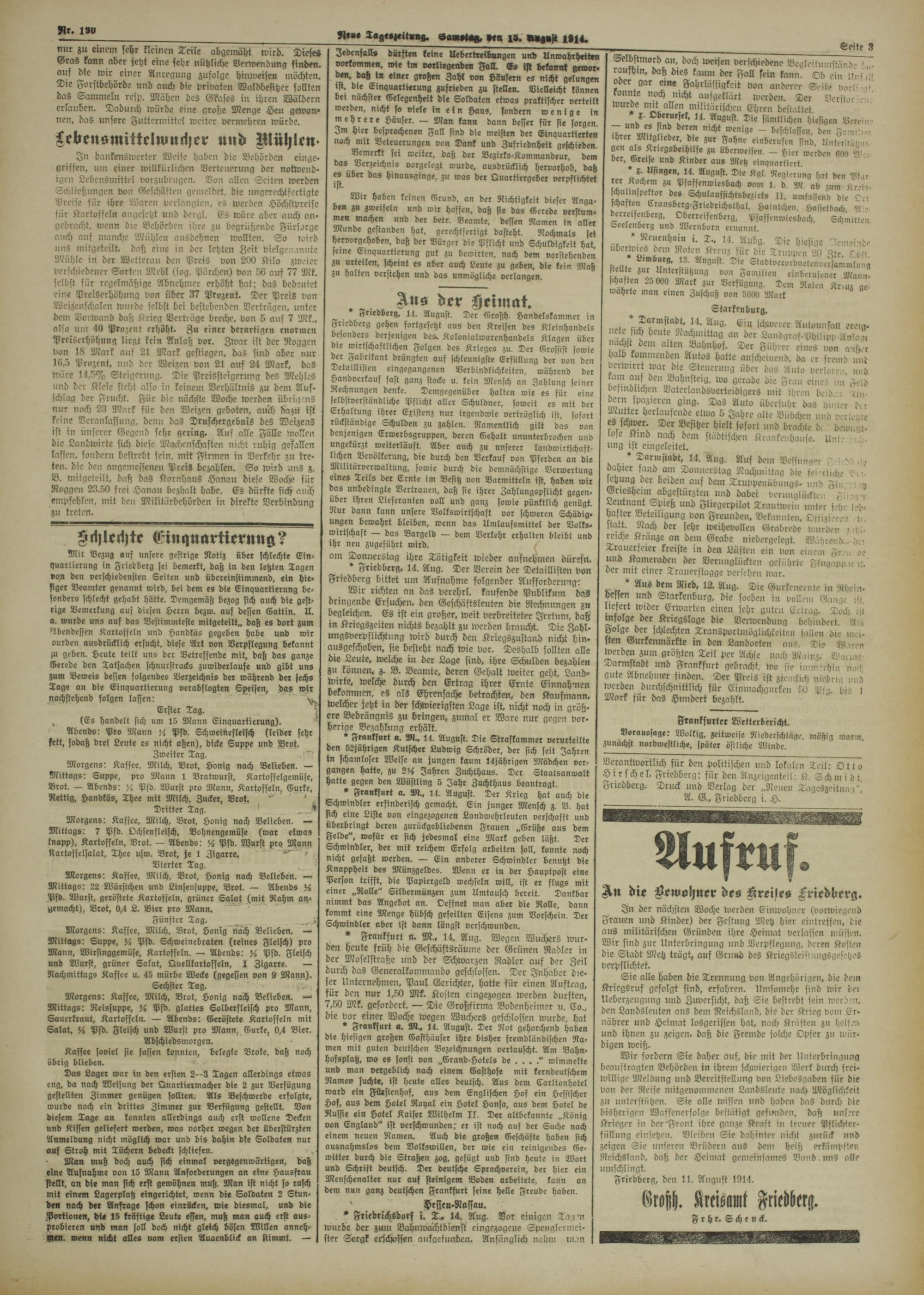 Regionale Zeitungen aus der Zeit des Ersten Weltkrieges