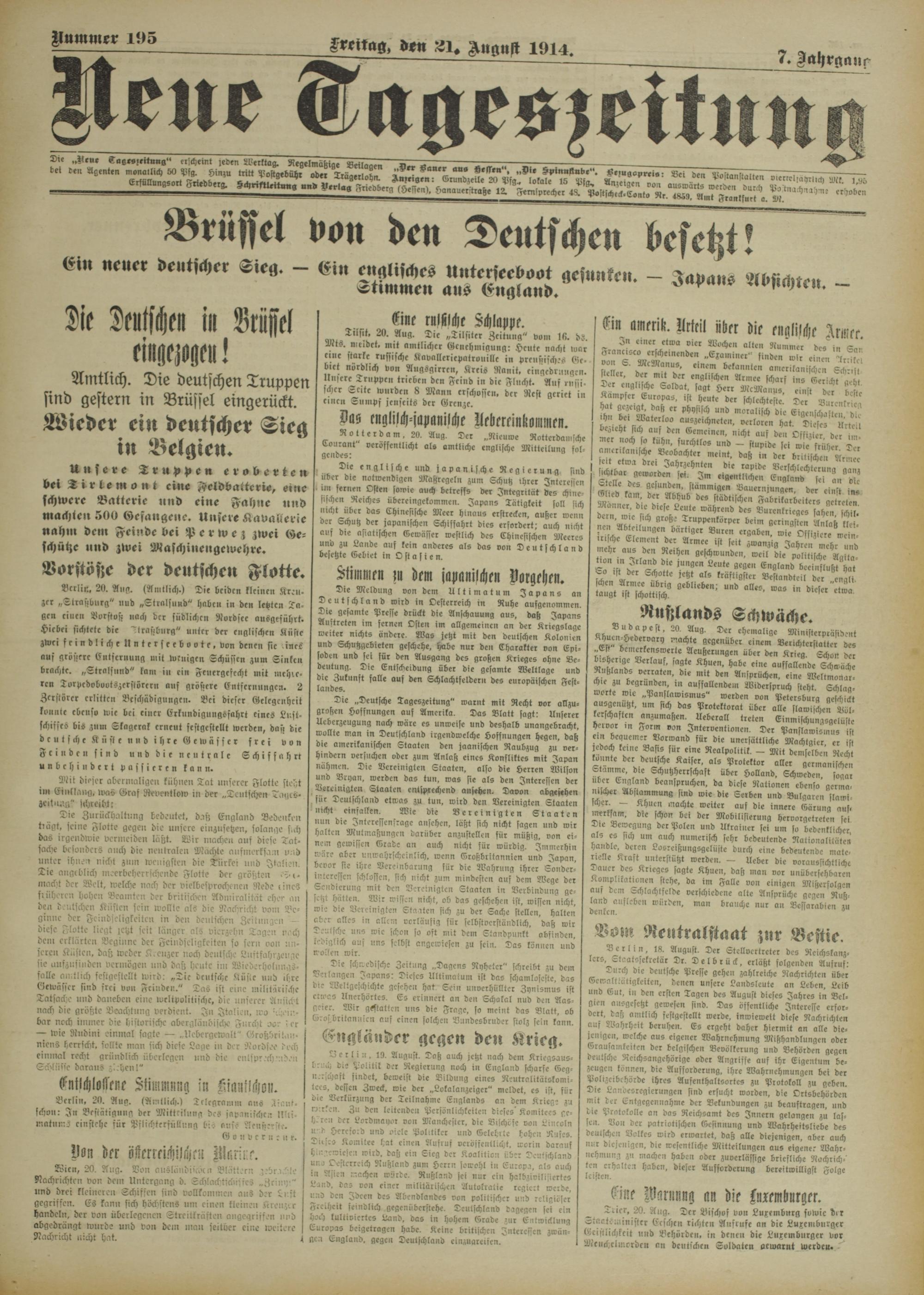 Neue Tageszeitung. 1914-1914