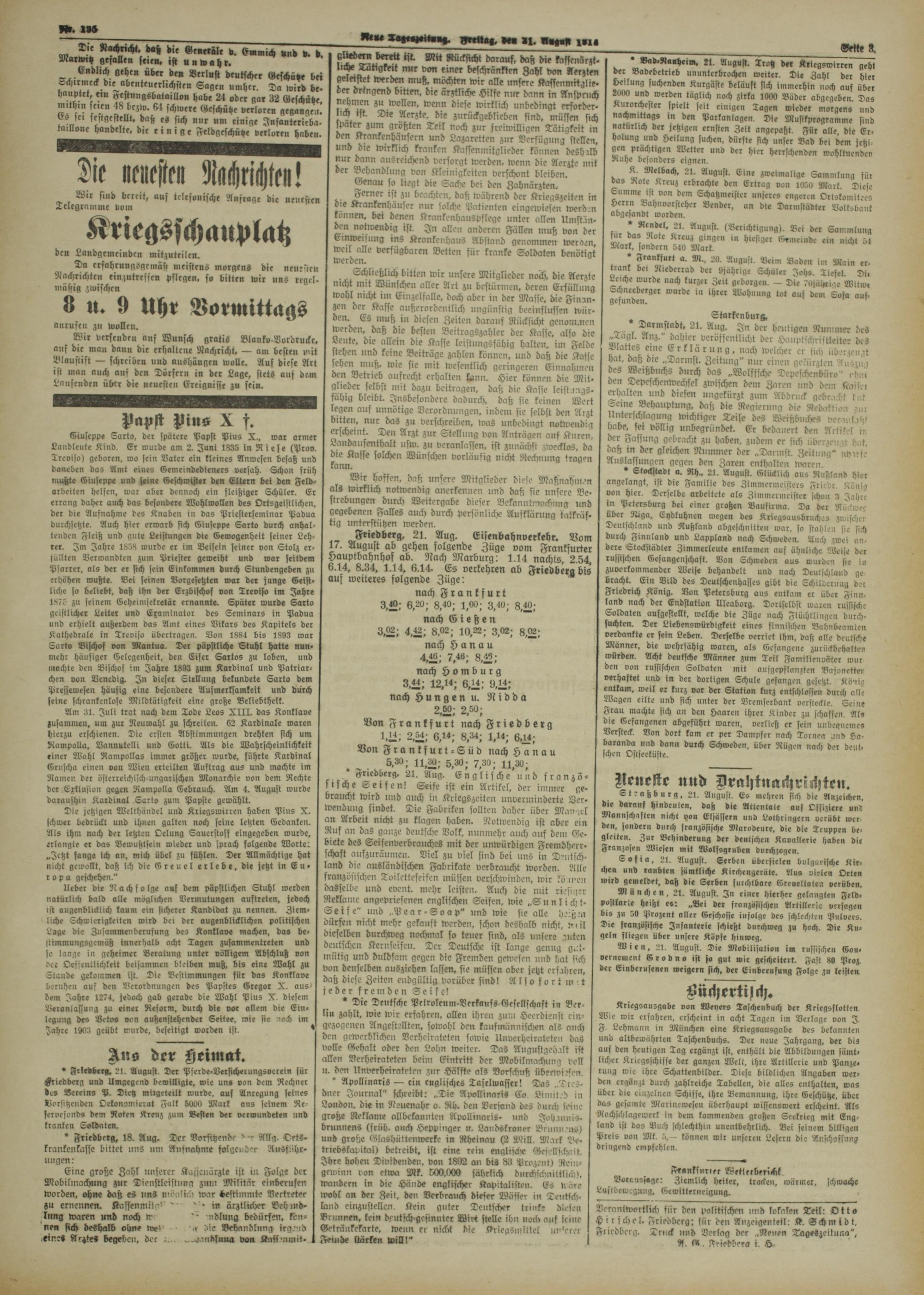 Neue Tageszeitung. 1914-1914