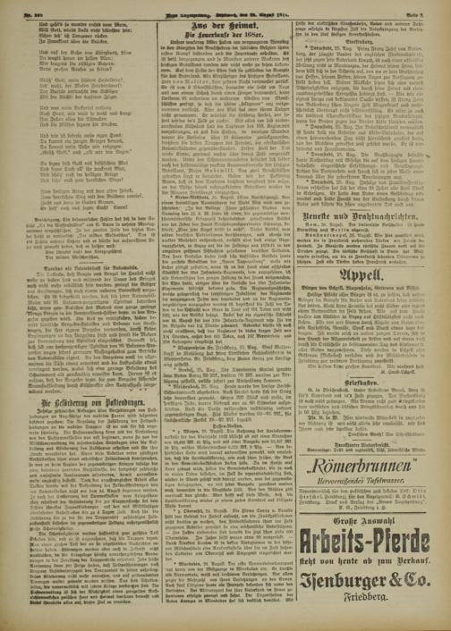 Regionale Zeitungen aus der Zeit des Ersten Weltkrieges