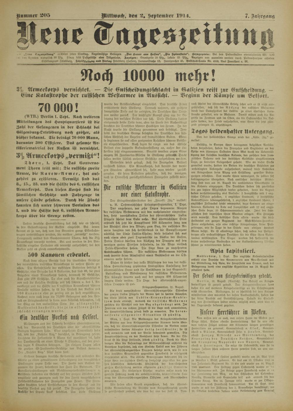 Neue Tageszeitung. 1914-1914