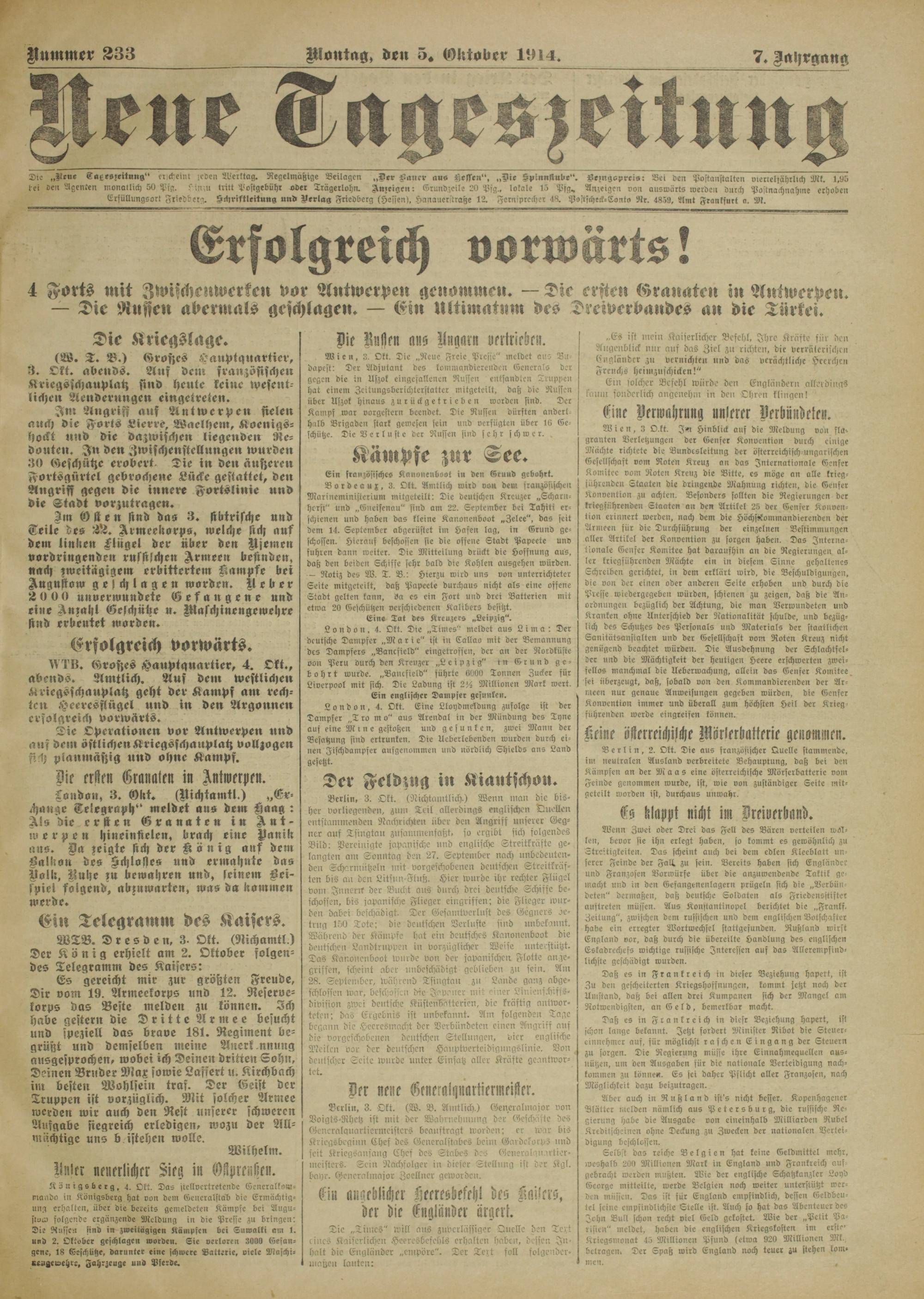Der Erste Weltkrieg im Spiegel hessischer Regionalzeitungen