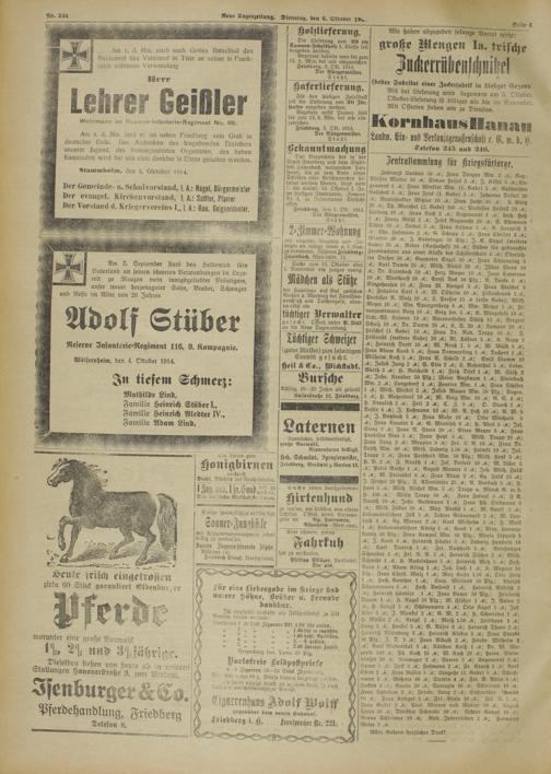 Regionale Zeitungen aus der Zeit des Ersten Weltkrieges
