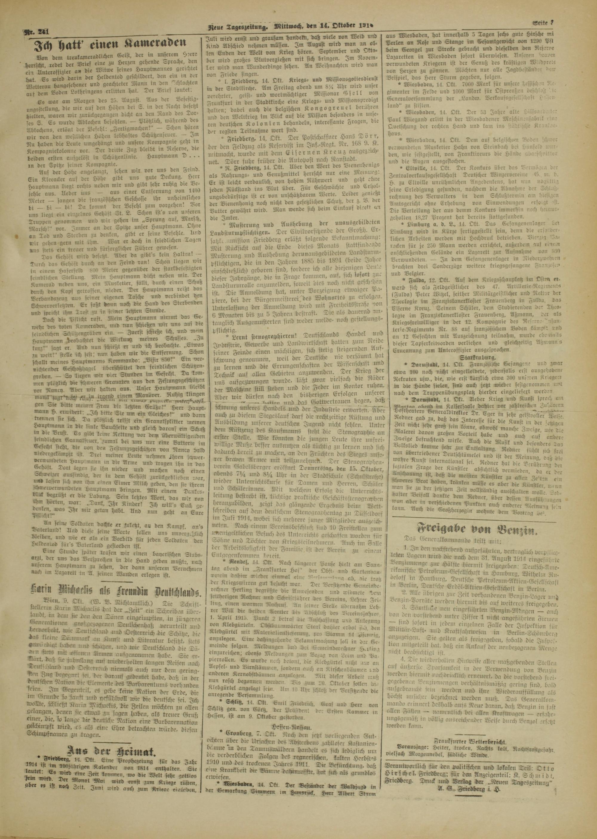 Regionale Zeitungen aus der Zeit des Ersten Weltkrieges
