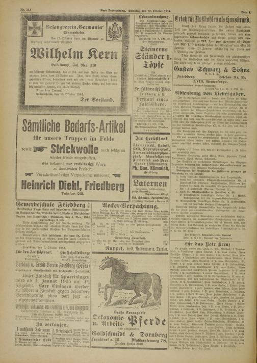 Regionale Zeitungen aus der Zeit des Ersten Weltkrieges