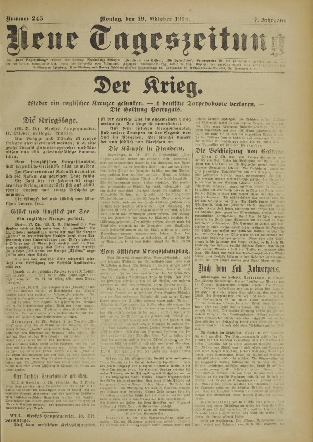 Der Erste Weltkrieg im Spiegel hessischer Regionalzeitungen