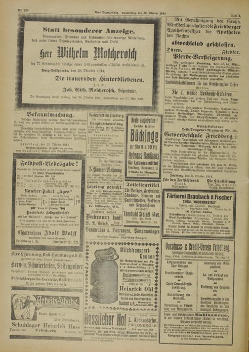 Regionale Zeitungen aus der Zeit des Ersten Weltkrieges