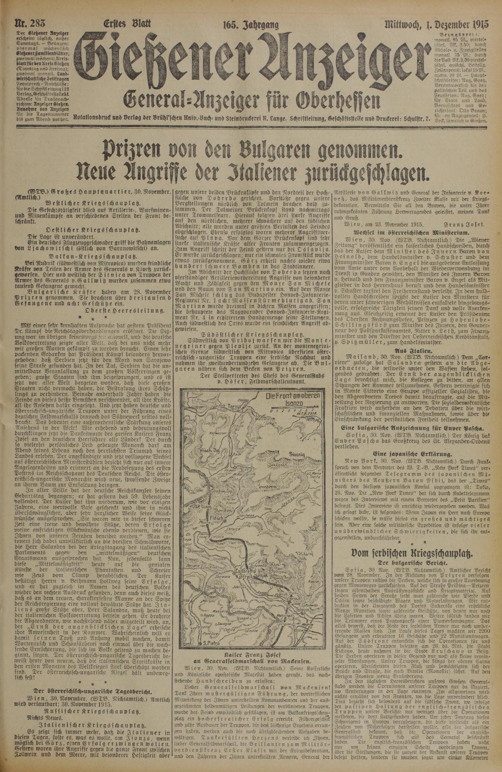 Regionale Zeitungen aus der Zeit des Ersten Weltkrieges