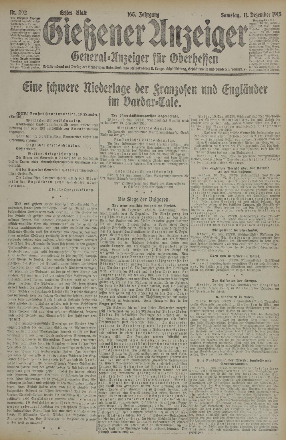 Regionale Zeitungen aus der Zeit des Ersten Weltkrieges