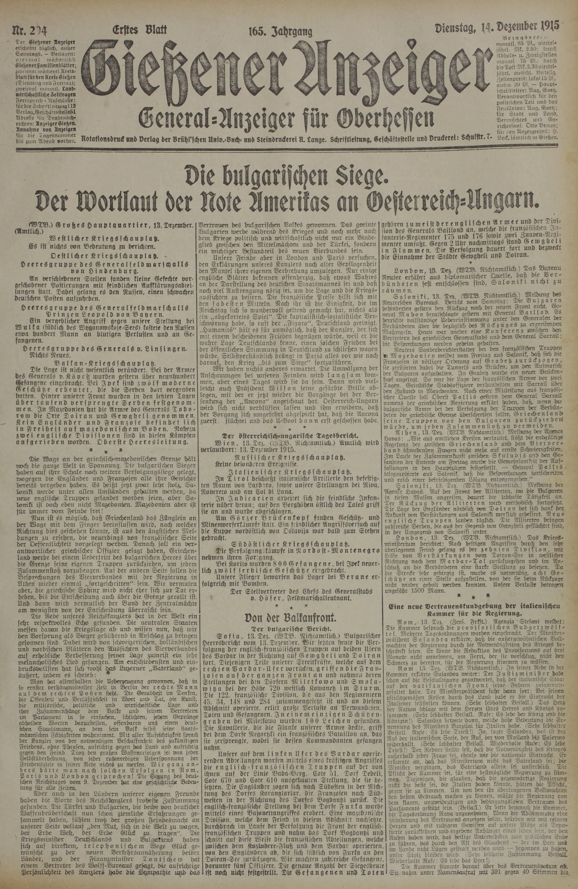 294 (14.12.1915) Erstes Blatt