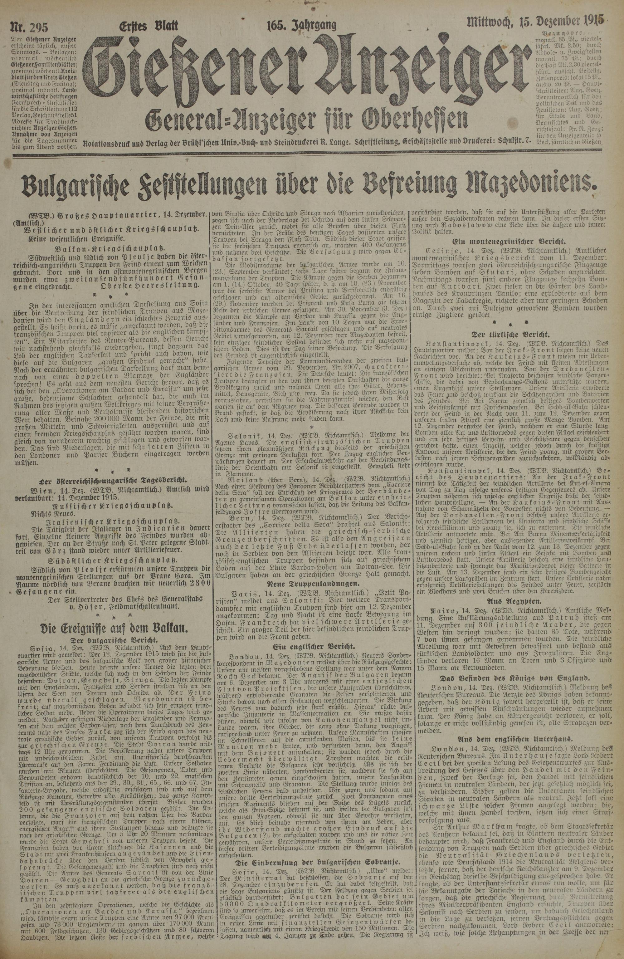 295 (15.12.1915) Erstes Blatt