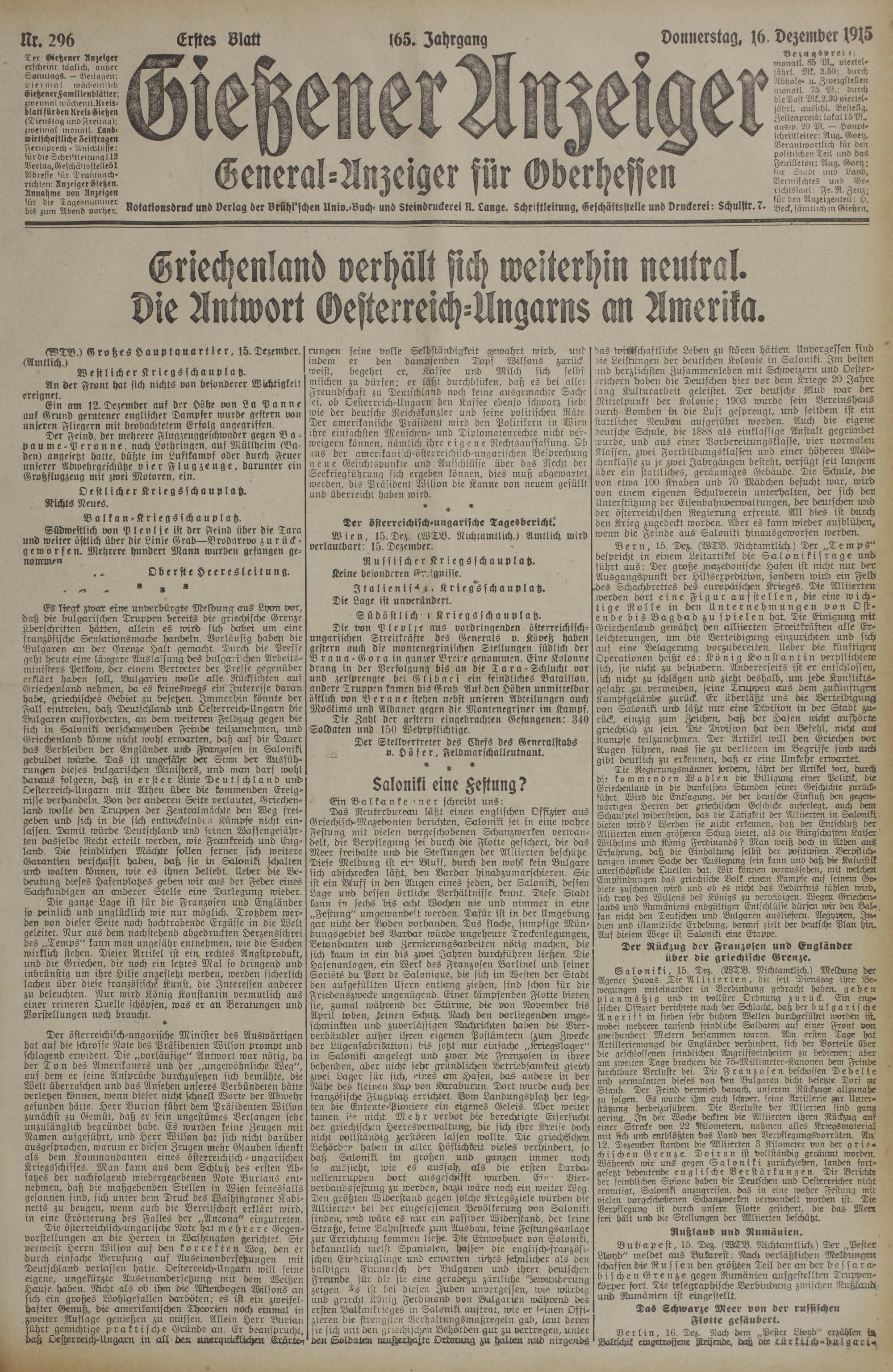 296 (16.12.1915) Erstes Blatt
