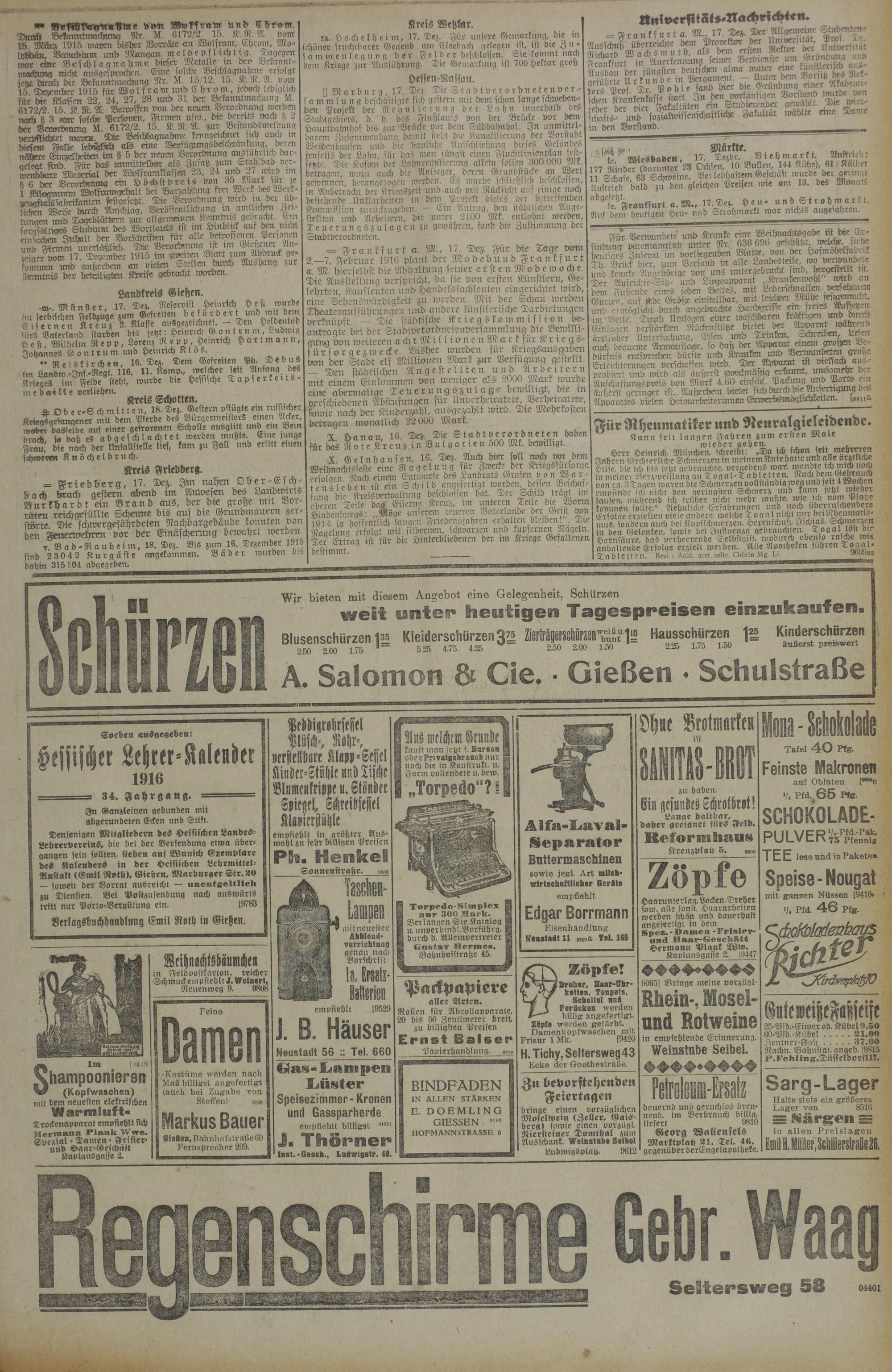 Regionale Zeitungen aus der Zeit des Ersten Weltkrieges