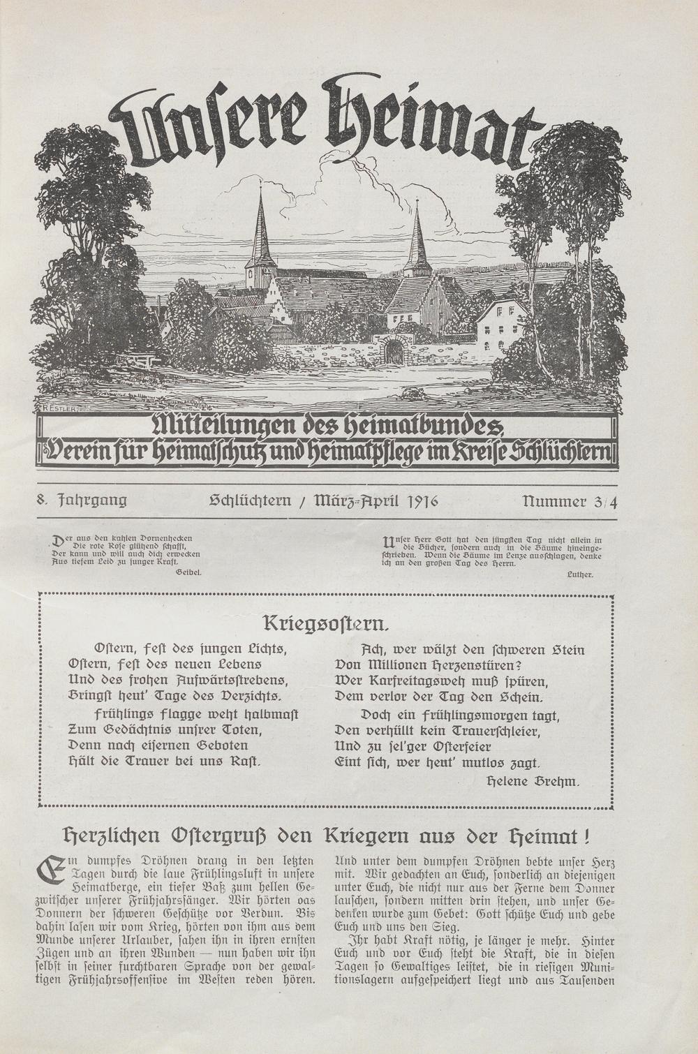 tn dumpfes Dröhnen drang in den letzten Tagen durch die laue Frühlingsluft in unsere Heimatberge, ein tiefer Baß zum hellen Ge- zwitscher unserer Frühjahrssänger. Wir hörten das Donnern der schweren Geschütze vor Verdun. Bis dahin lasen wir vom Krieg, hörten von ihm aus dem Munde unserer Urlauber, sahen ihn in ihren ernsten Zügen und an ihren Wunden — nun haben wir ihn selbst in seiner furchtbaren Sprache von der gewaltigen Frühjahrsoffensive im Westen reden hören.