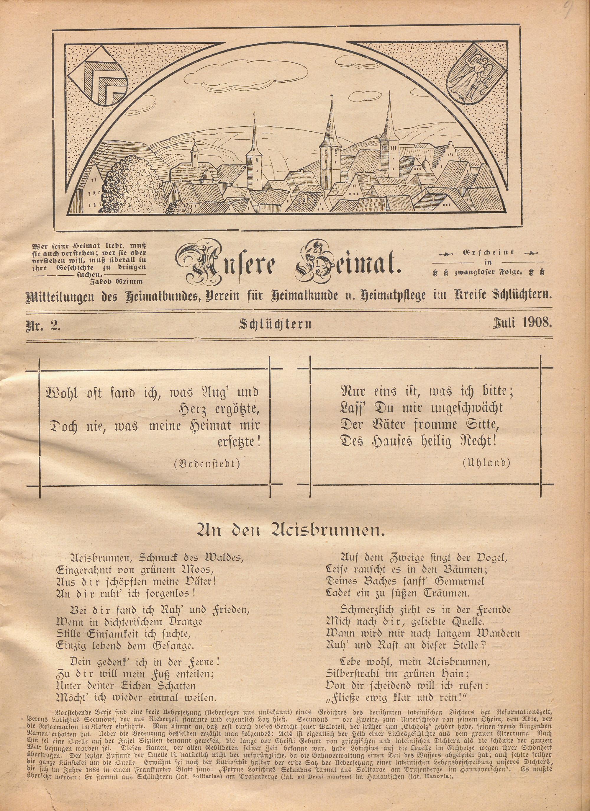 Wer seine Heimat liebt, muß sie auch verstehen; wer sie aber verstehen will, muß überall in ihre Geschichte zu dringen --suchen,----------- Jakob Grimm