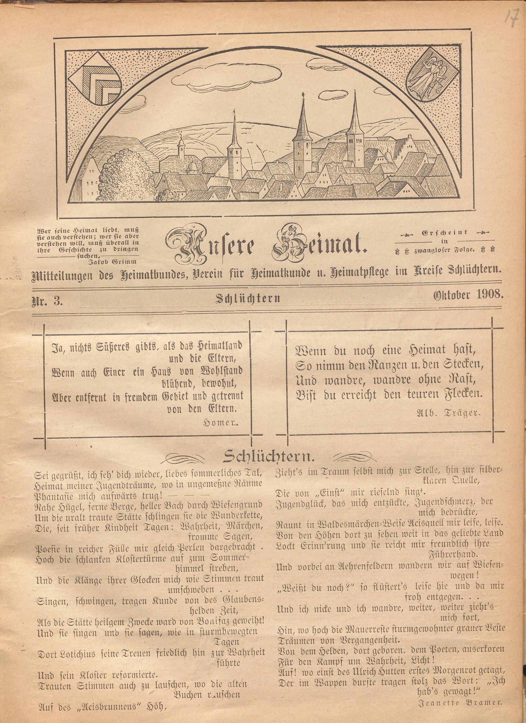 Wer seine Heimat liebt, muß sie aud) verstehen; wer sie aber verstehen will, muß überall in ihre Geschichte zu dringen ------------suchen.------------ Jakob Grimm