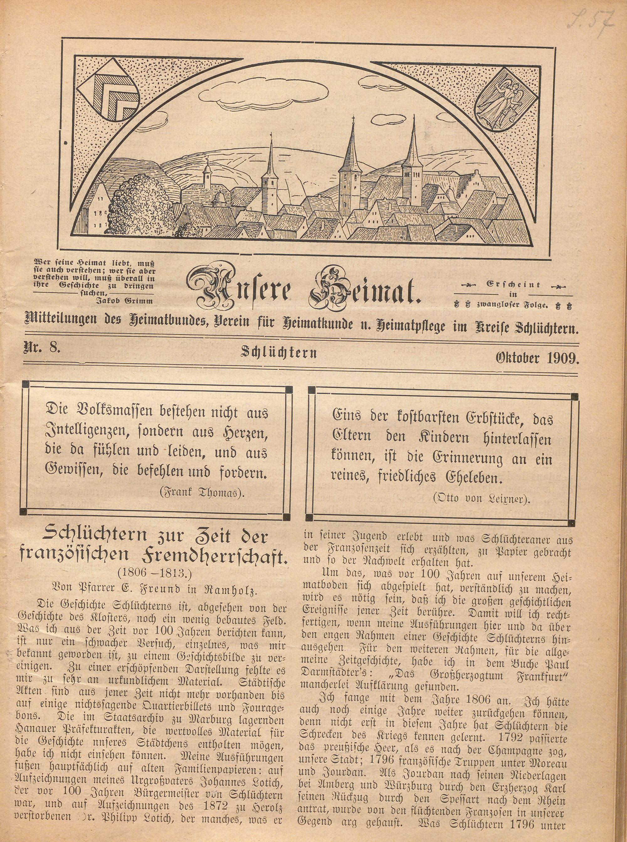 Mitteilungen des Heimatbundes, Uerein für Heimatkunde n. Heimatpflege im Kreise Schlüchtern.