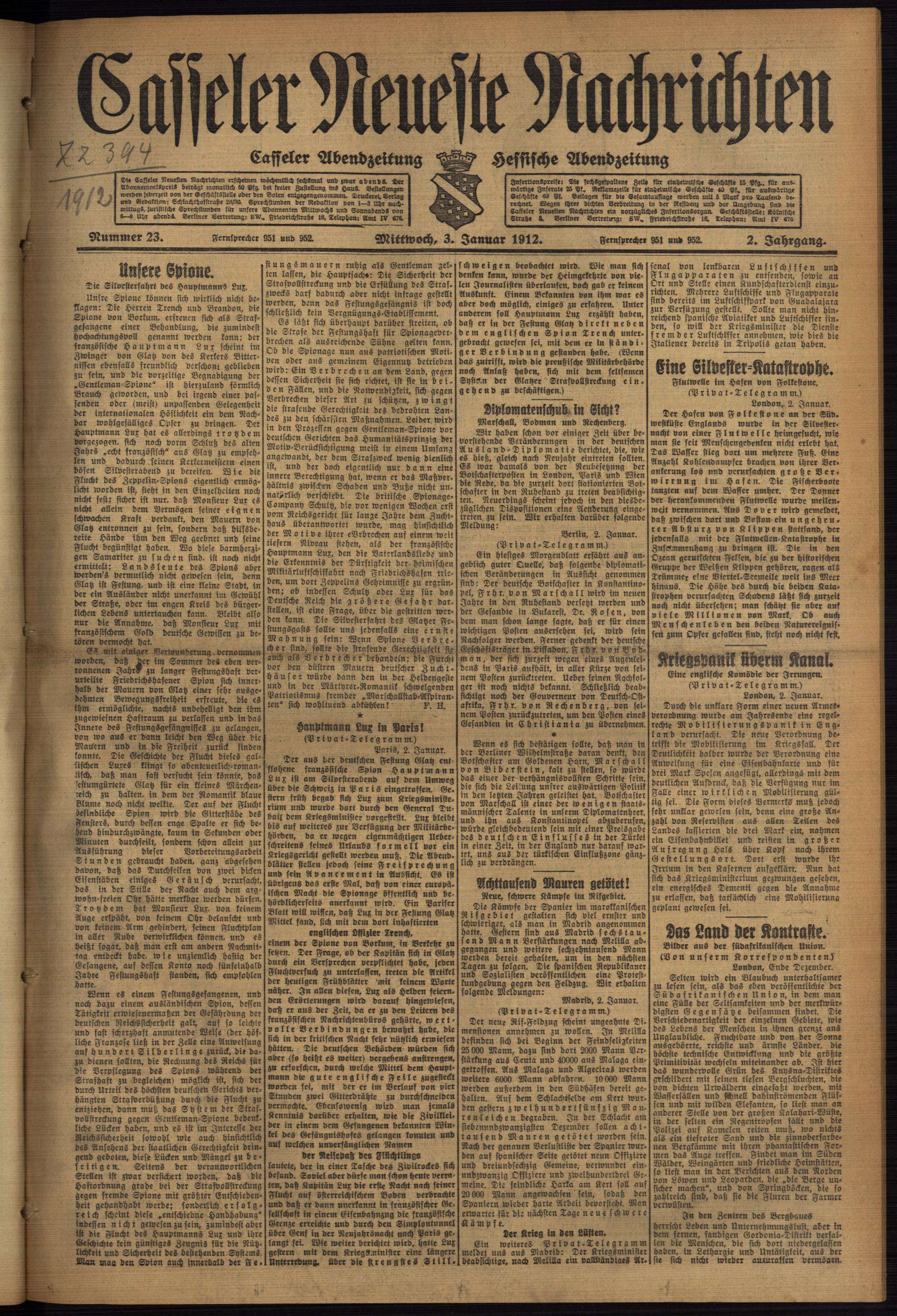 Zeitung Casseler neueste Nachrichten. 1914-1918