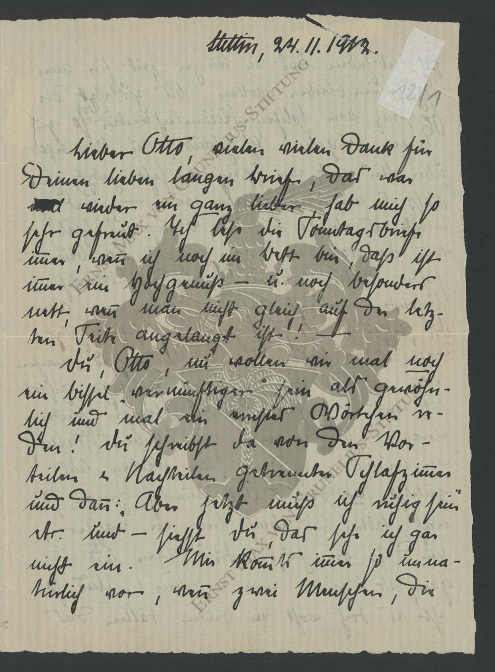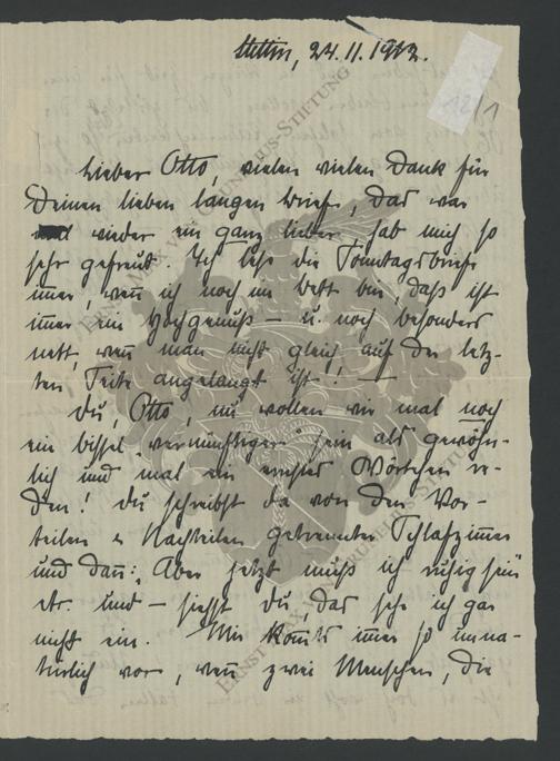 Briefe von Edith Junghans aus Stettin an Otto Hahn in Berlin