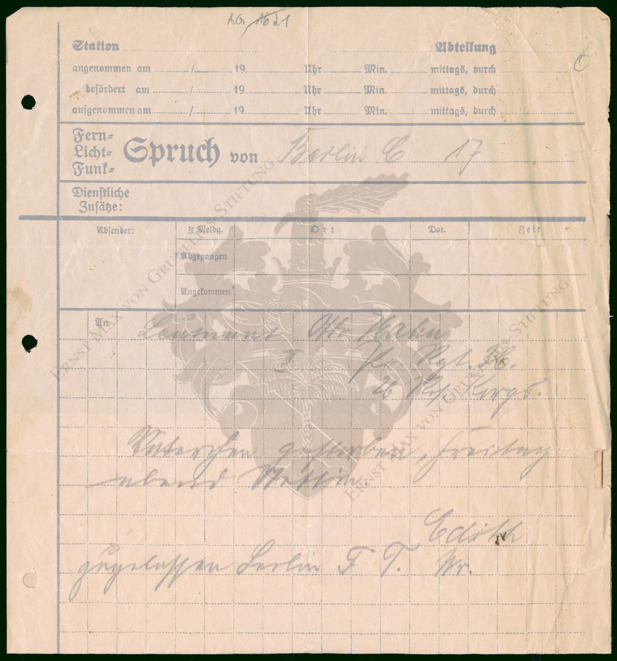 7. Zugfahrt von Berlin nach Stettin, 18.11.1915