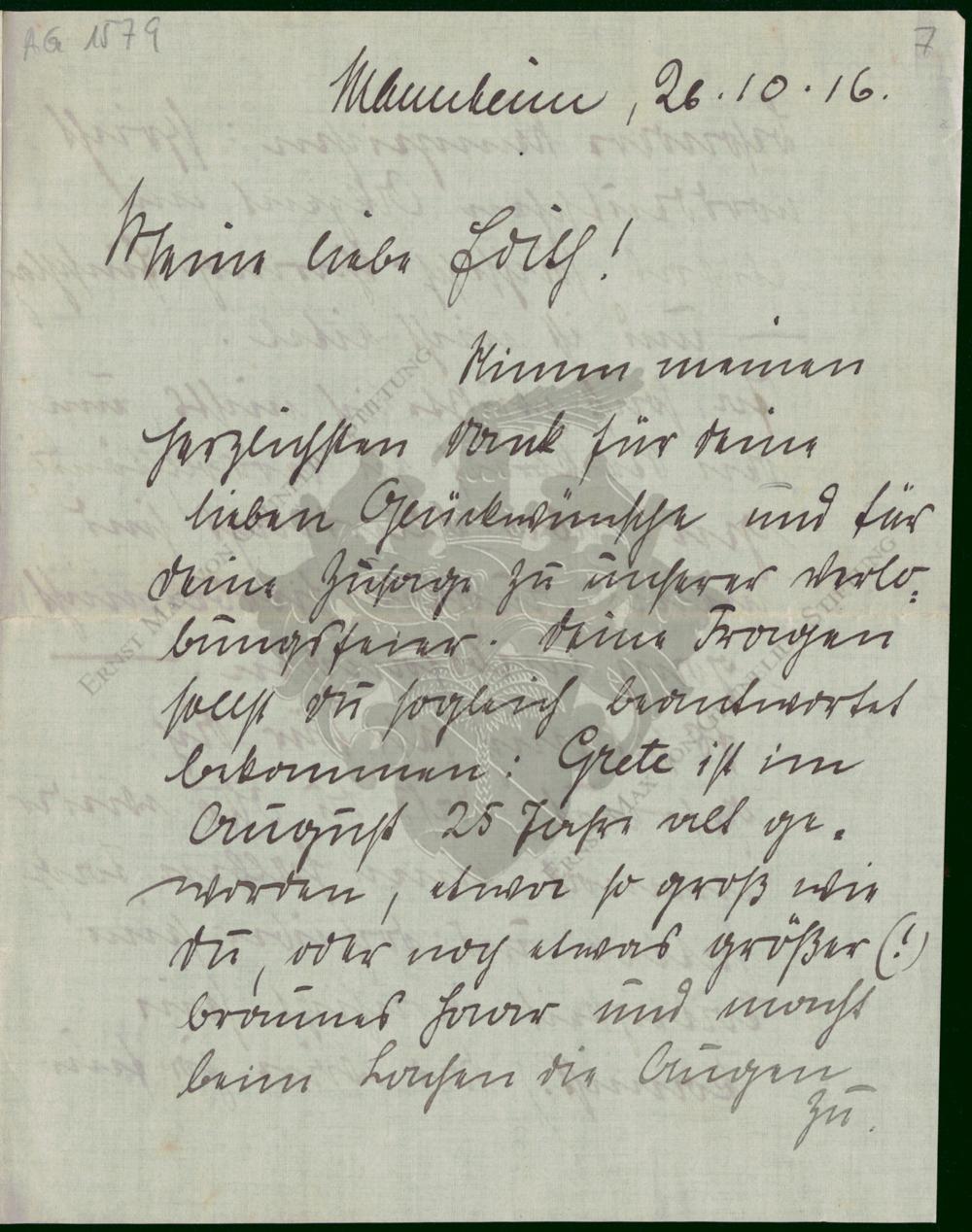 Briefe und Postkarten von Julius Hahn an den Bruder Otto Hahn und an die Schwägerin...