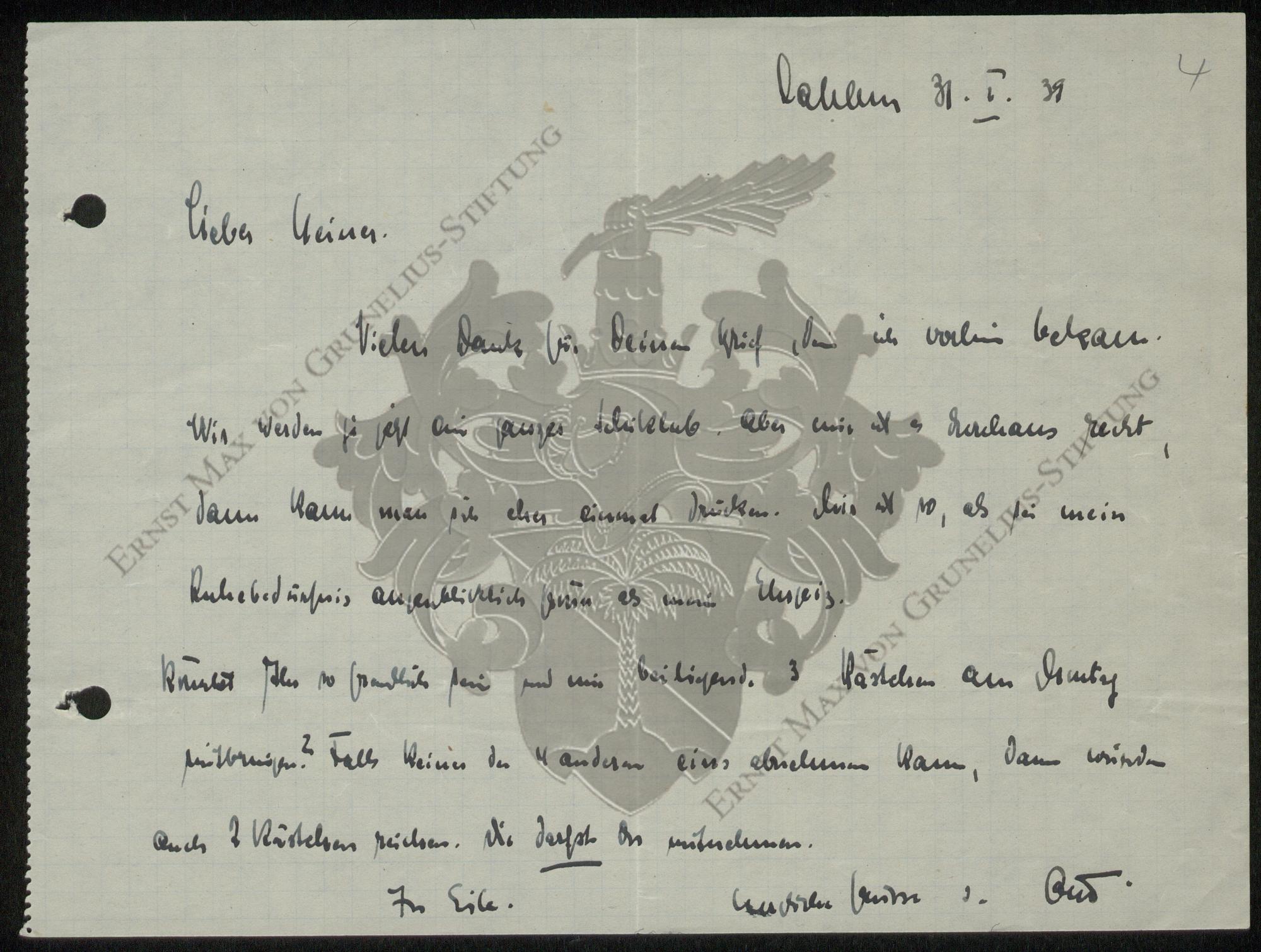 Briefe und Postkarten von Otto Hahn an seinen Bruder Heinrich (Rufname: Heiner) in...