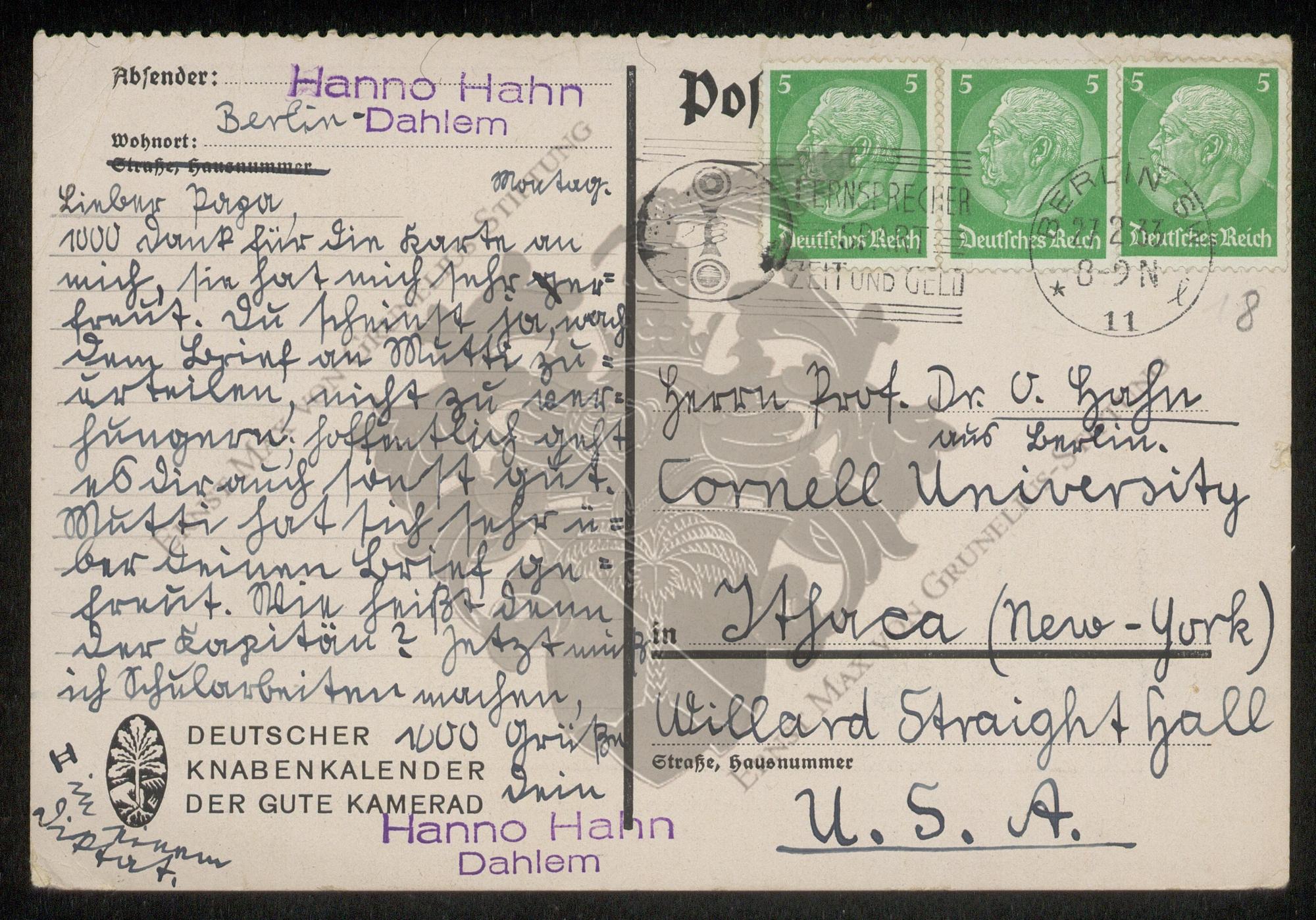 Briefe von Hanno Hahn an seinen Vater Otto Hahn