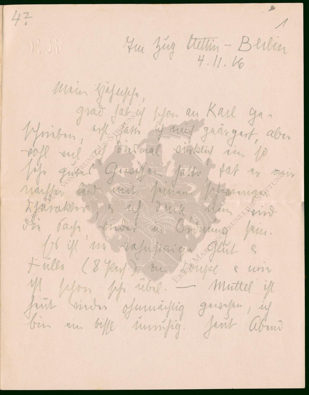 1: Zugfahrt von Stettin nach Berlin, 04.11.1916