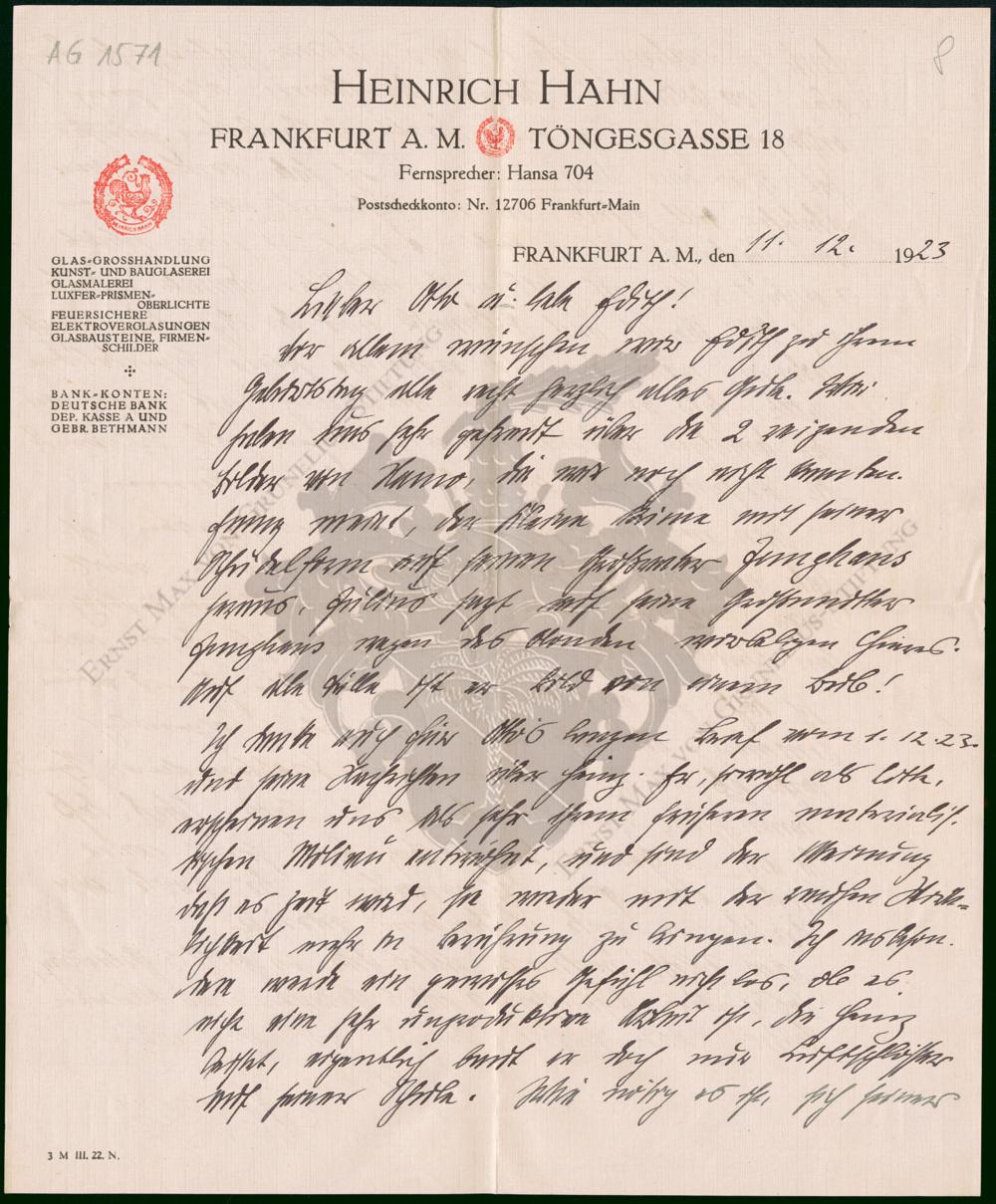 Briefe von Heinrich Hahn (Rufname: Heiner) und seiner Ehefrau Emmy an den Bruder...