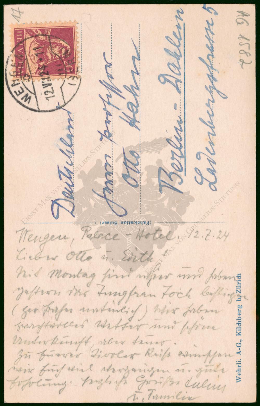 Briefe und Postkarten von Julius Hahn an den Bruder Otto Hahn und an die Schwägerin...