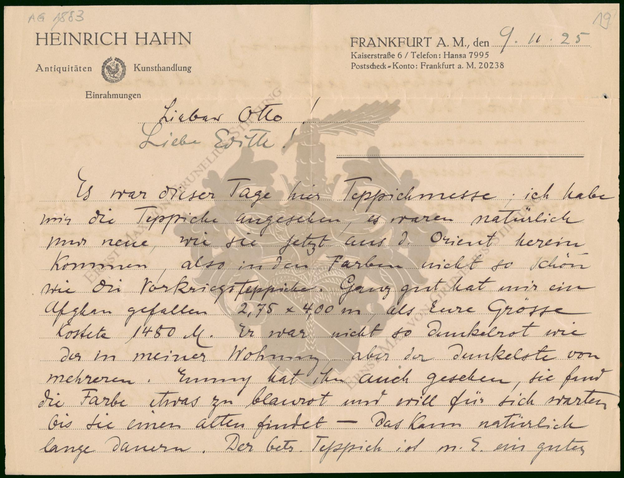 Briefe und Postkarten von Julius Hahn an den Bruder Otto Hahn und an die Schwägerin...