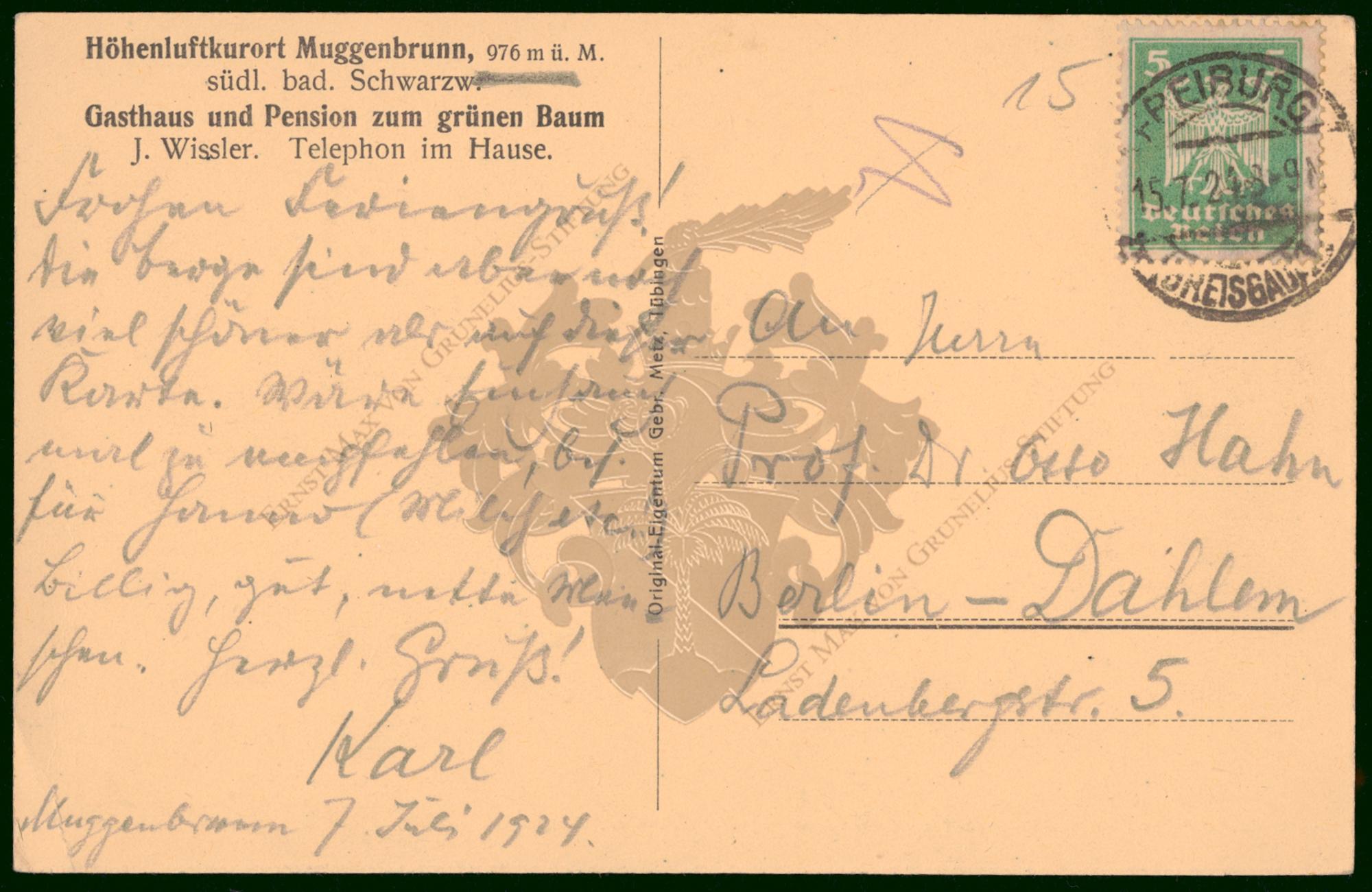 Briefe und Postkarten von Karl Hahn an seinen Bruder Otto Hahn und an die Schwägerin...