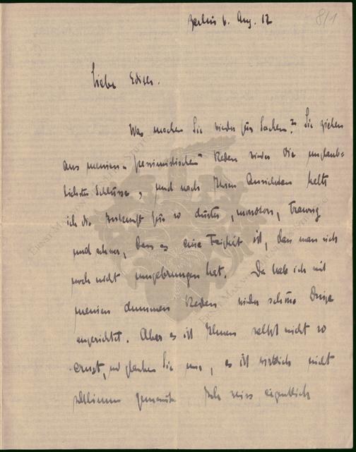 Briefe von Otto Hahn an seine (spätere) Ehefrau Edith, geb. Junghans