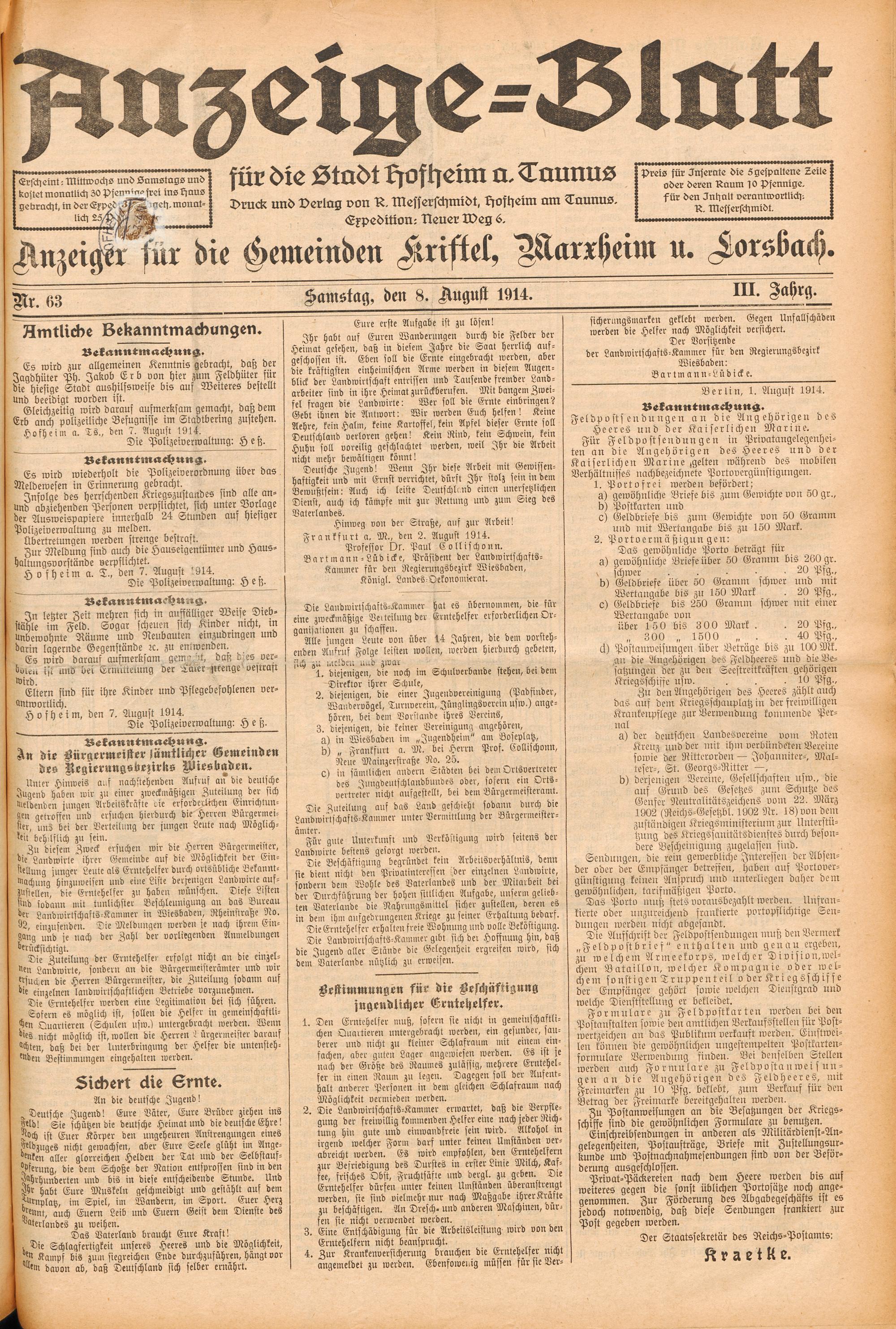 Anzeige-Blatt für die Stadt Hofheim a. Taunus